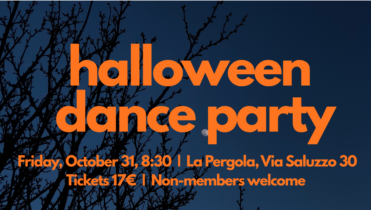 Break out your costumes (or all-black attire) for our inaugural Halloween Dance Party on Friday, October 31 at La Pergola. Just a 5-minute walk from Porta Nuova, festivities will start at 8:30, and we will have the entire bar to ourselves for an adults-only bash. Non-member guests are welcome, so please invite your friends and partners.