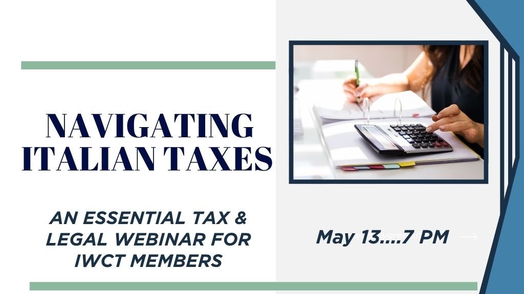 Save the date for this important webinar Navigating Italian taxes – An Essential Tax & Legal Webinar for IWCT Members   More information is coming